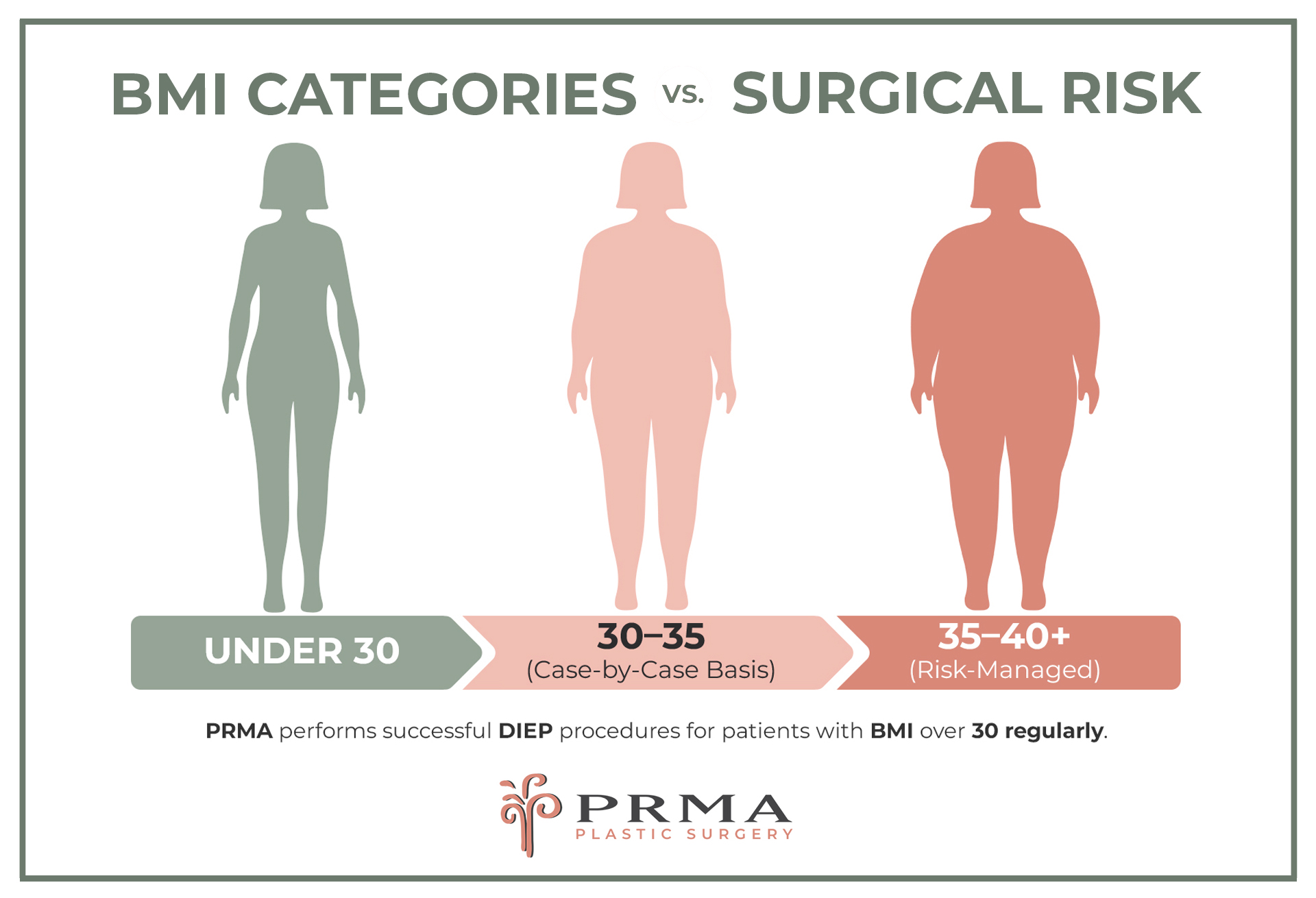 It’s completely normal for your body—and your weight—to continue changing after reconstruction. Because DIEP flap surgery uses your own living tissue, your reconstructed breasts may naturally shrink or adjust in size if you lose weight, just like the rest of your body. These changes are usually subtle, but they can affect symmetry over time. The good news? PRMA’s care doesn’t end with your initial surgery. Our surgeons routinely perform stage 2 revisions, fat grafting, and other minor aesthetic procedures to fine-tune your results and optimize balance, shape, and symmetry.Don’t Let BMI Hold You Back—Explore Your Options With PRMA